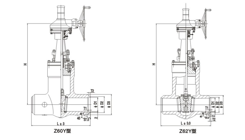 The Z61Y-250 and Z61Y-320 durable High Pressure Flanged Gate Valve manufactured by JQF Valve factory are manual butt-welded connection valves with a single-rod wedge-shaped rigid single-disc design. The valve seat sealing surface material is hard alloy, with a nominal pressure of PN250~PN320. The valve body material is carbon steel high-temperature and high-pressure power station gate valve.